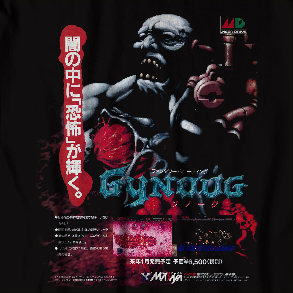 Gynoug is a 1991 horizontal shoot 'em up (shmup) developed by NCS and published by Masaya (Japan/Europe) and DreamWorks (North America) for the Sega Mega Drive (Genesis).